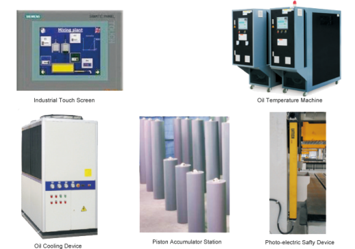 Movable Table, Displacement Sensor, Knocking Device, Mould Exchanging Trolley, Cooling Device, Cushion Device, Photo-electric Safety Device System, Oil Heating Device, Industrial Touch Screen, Automat