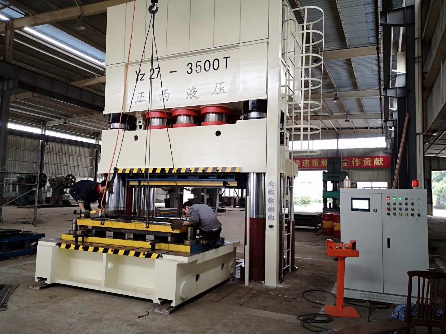 廣漢客戶的在我司訂購的3500T四柱液壓機交貨啦,送至客戶工廠安裝調試。